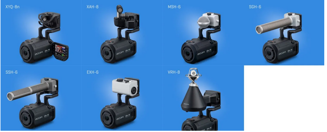 تمامًا مثل مسجلات الصوت Zoom الأخرى ، لا يمكن لـ Q8n-4K فقط التعامل مع الإشارات الصوتية الاحترافية عبر مدخلي XLR (بقوة: +12 V / +24 V / +48 V) على الكاميرا نفسها ، ولكن أيضًا بها ميكروفون خاص يمكن استبداله بوحدات ميكروفون أخرى مختلفة بخصائص مختلفة.